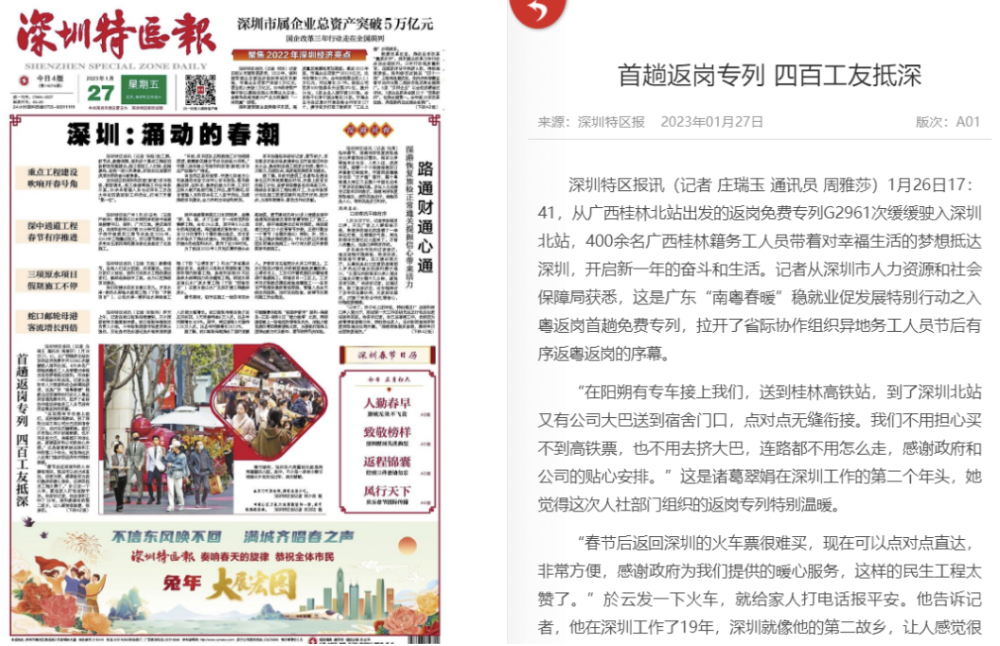 免费专车、专列会大量安排,一口气从广西为深圳运回了400多名工友。