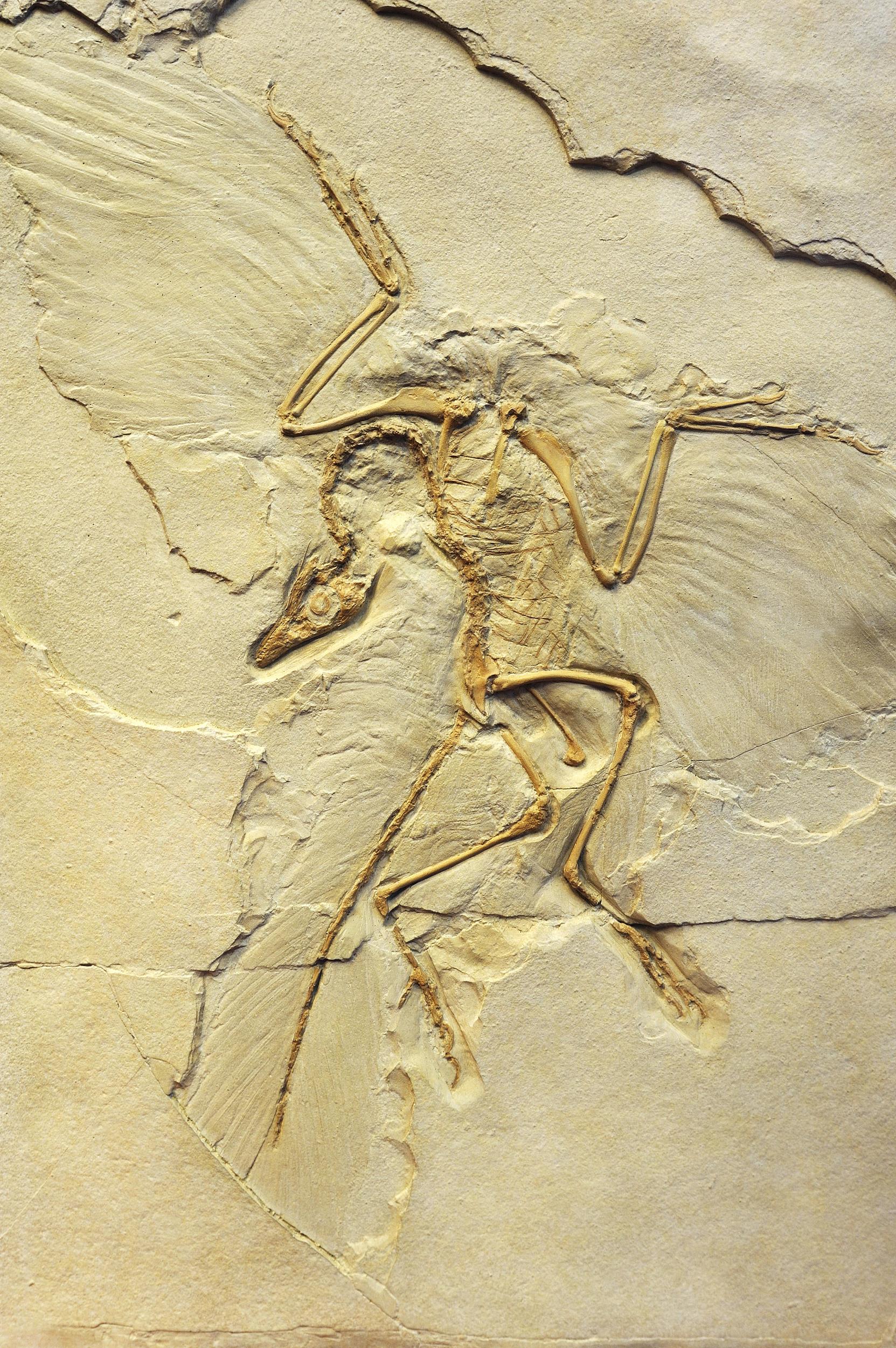 体型较小,善于攀援树栖的带羽恐龙,在这场无差别袭击中幸存了下来(始祖鸟的化石,图:视觉中国)