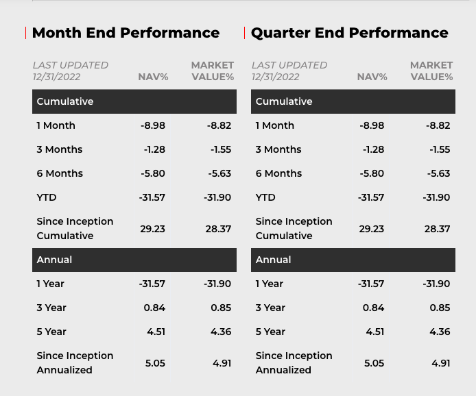 AIEQ的月度业绩和季度业绩(截至2022年12月31日)