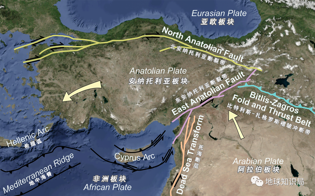 而在具体的区域上,震中位于安纳托利亚板块(亚欧板块内部的次级板块)和阿拉伯板块的边界上,文献多称作东安纳托利亚断裂带(EAFZ)。