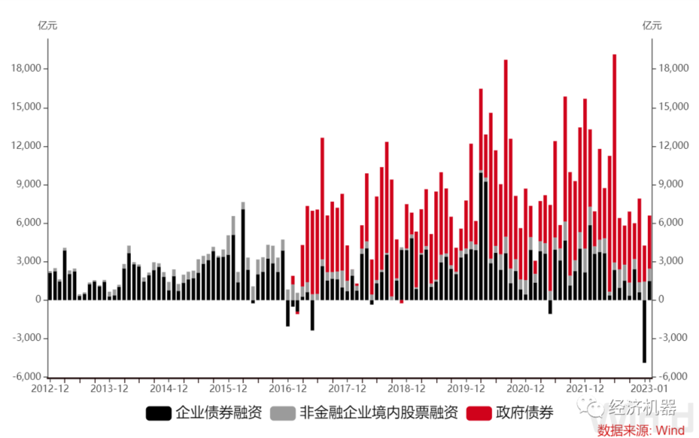 另一方面,去年以来,企业债券发债环境整体较为恶化。去年四季度以来、受房地产行业低迷、城投债违约风险提升、信用债融资环境恶化等因素影响,部分企业债发行大幅回落。但同时也要看到,相比去年12月,企业债券融资多增6373亿,已经开始修复。未来随着地产成交的回暖、经济修复、信用环境改善,企业债融资有望走好。