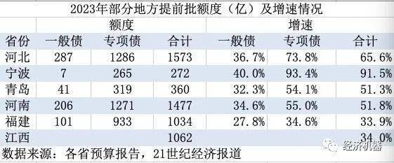 提前批额度于今年1月份启动发行,争取上半年将债券资金使用完毕。1月,21世纪经济报道汇总各地披露的预算报告(图6),显示多地2023年提前批专项债限额相比2022年大幅增加,增速在34%-92%之间,预计全国提前批专项债额度可能达到2.19万亿(2022年提前批1.46万亿)。也有机构预测全年发行专项债5.4万亿(2022年4.0万亿)。未来几月专项债数据依然值得期待。