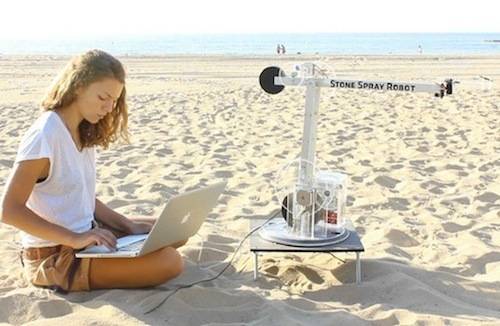 来自西班牙加泰罗尼亚高等建筑研究所(IAAC)的建筑师Petr Novikov,Inder Shergill和Anna Kulik研制了一台名为“喷石(Stone Spray)”的3D打印机,可以在施工现场将泥土和粘合剂混合,用喷枪表面上喷出坚如磐石的结构。目前该打印机已经可以打印出建筑物大小的物体。