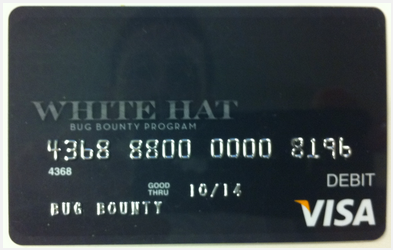 Facebook将赏金通过一种叫作“White Hat”的借记卡邮寄给黑客们。如下图。