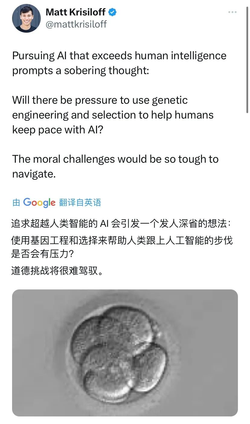 我能理解很多计算机和数学物理背景的朋友,更倾向于未来摆脱生物“肉身”的束缚,让人类可以快速进化成为“超越性的智能体”,这种观点有丰富的论据和越来越多人支持,也许超级智能就是这个时代的神。