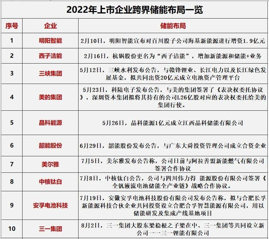 过去一年内,已有20余家上市企业跨界投资储能,比如,明阳智能、美的集团、传艺科技、永泰能源、安孚科技、杭锅股份等等,杭锅股份更是直接改名为西子洁能,看来是对储能的热爱不是一点点。