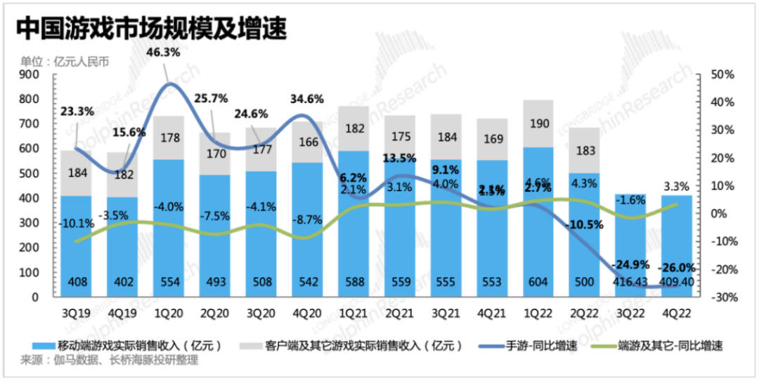 去年国内游戏公司,包括腾讯,为了降本增效,对一些效益不高的游戏项目都做了停止研发投入或关停服务器的处理,我们认为行业整体收入的下滑与供给端的缺位关系更大。