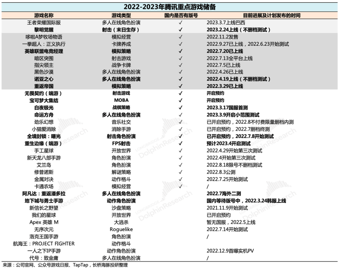 因此在连续数月的版号正常发放后,整体行业供给改善,腾讯这边的游戏储备也是比原先预期的要更丰富一些,在新游戏发布排期上,也会比之前要更乐观一些。值得关注的重点游戏(已获版号),比如《王者荣耀国际服》《无畏契约国服》《命运方舟》《白夜极光》以及《全境封锁》等。