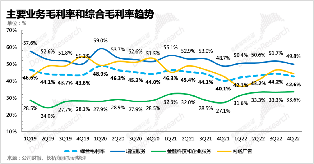 1. Non-IFRS归母净利率虽然比预期少了10亿,但预期差主要在其他收入上,核心主业的经营利润在低基数下同比增长30%,与市场预期还是比较一致的。毛利率有一点点的预期差,可能与业务结构变化更相关。比如成本率更高的海外游戏、视频号的增长在四季度超了预期。