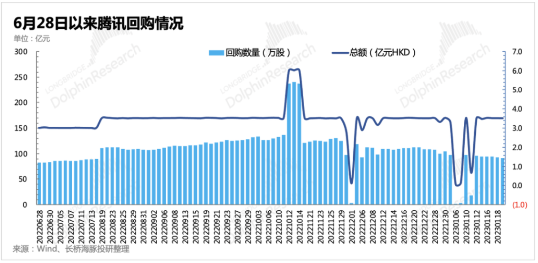 过去一年大股东减持对腾讯短期股价表现影响较大,但市场也已经基本习惯。不过海豚君认为有必要及时更新目前对减持情况和同期腾讯的回购动作。