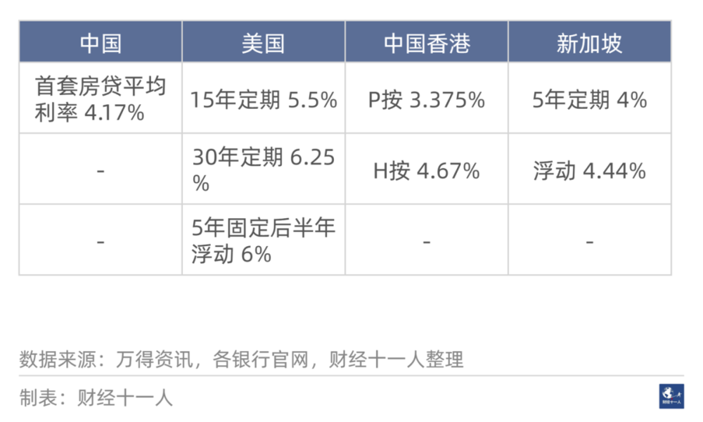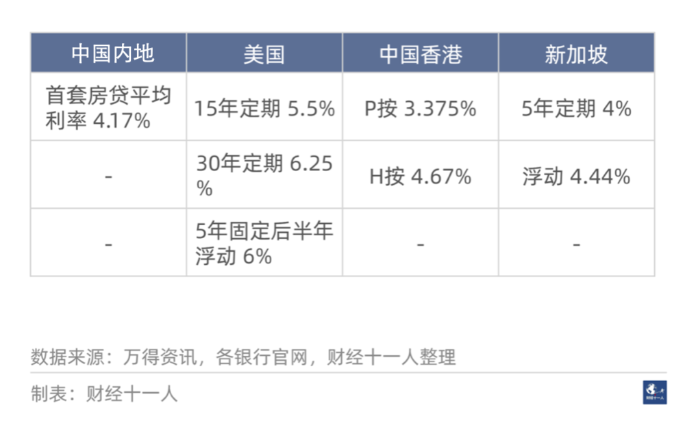 我们把中国内地的房贷利率和美国、新加坡、中国香港这些发达国家或地区的情况,做一个简单比较。结论如下。