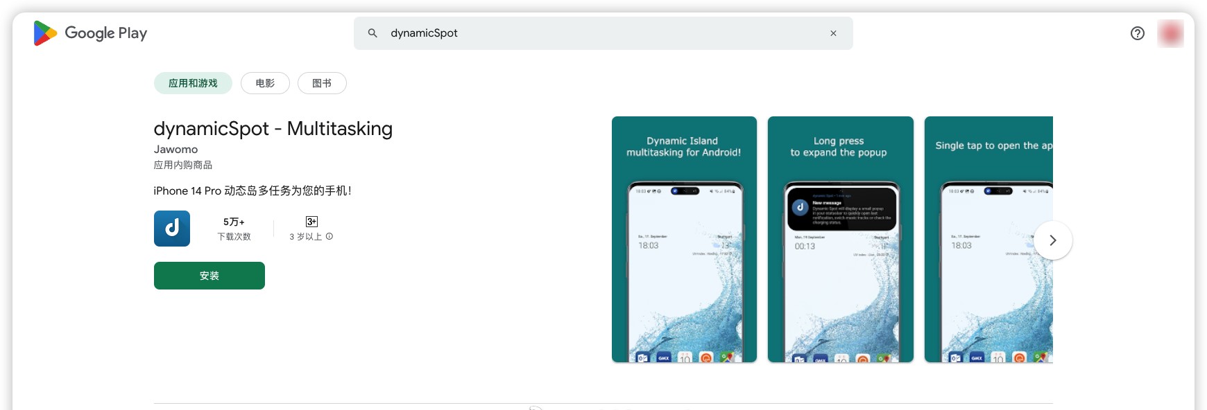【安卓灵动岛APP上架】据MacRumors报道,一款模仿苹果iPhone 14 Pro系列中“灵动岛”UI设计的App已出现在Google Play商店中,名为“dynamicSpot”,支持Android手机体验。根据开发者的描述,在当前形式下,dynamicSpot提供歌曲、计时器、电池状态的播放控制,还将推出更多功能。包括苹果“灵动岛”所没有的个性化定制功能。