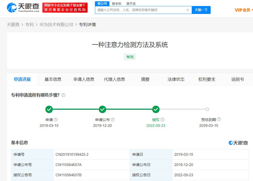 【华为专利可用脑电信号测司机注意力】天眼查App显示,9月23日,华为技术有限公司申请的“一种注意力检测方法及系统”专利获授权。摘要显示,本申请通过耳侧佩戴装置采集用户的脑电信号,通过对左右耳道的脑电信号进行差分处理得到脑电信号;基于脑电信号检测用户的注意力类型。本申请方案能够更加方便快捷的获取到用户的脑电信号,并能够随时随地对用户的注意力情况进行检测,可应用于自动驾驶领域,用于对驾驶员的注意力进行智能检测,并基于检测结果对用户进行预警或者进行驾驶模式的切换。
