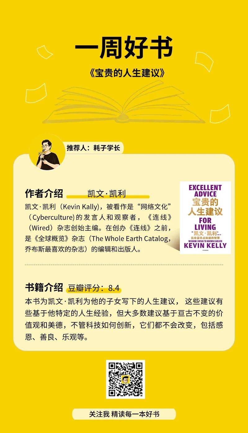 今天我们一起走近凯文·凯利,用心思考人生智慧背后的处世哲学。我选择了6条感触较深的内容,并结合自身经历和大家分享,文末也会摘录其他书中的精华。