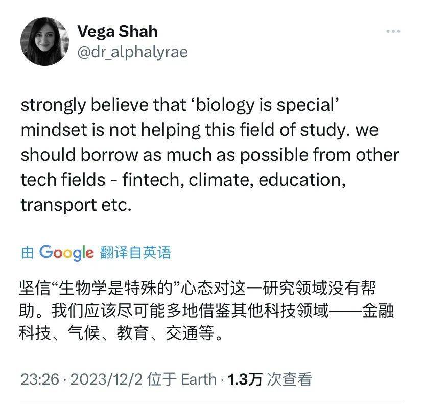 我同意生物技术领域的研究者 Vega Shah 的这段观点: