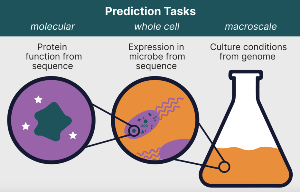 即使有了蛋白质功能和表达的预测模型( predictive models for protein function and expression ),生物学家仍然受制于实验室中可以处理的生物体种类。假设的梦想是让生物学家在任何生物体中表达具有任何功能的任何蛋白质( to express any protein, with any function, in any organism )。因此,预测模型的最终尺度,是“序列到生长(sequence-to-growth)” 预测模型;生物学家应该构建这样一个算法,通过仅查看微生物的基因组序列,就能推断出任何一种微生物的最佳生长营养物质。这可能是最难训练的模型,但它的影响将是巨大的。