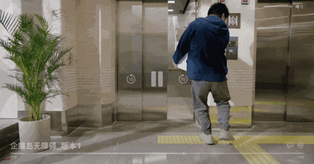 电梯交互也有小创新 —— 用户不仅可以按平常一样用手按电梯按钮,也可以选择「踢」着来按。