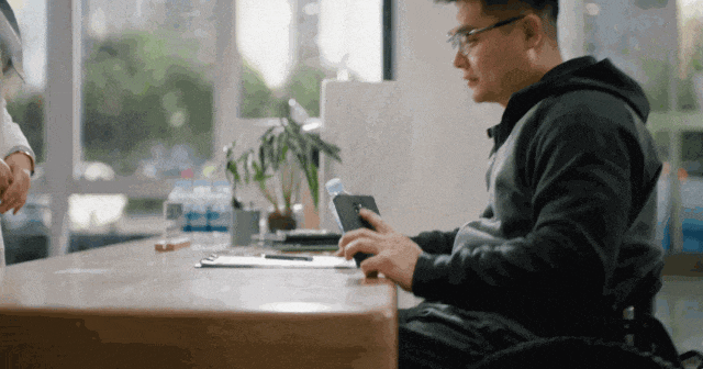 前海总部的柜台处也有巧思。柜台宽度设置在了 45cm,轮椅用户在使用时能把更进一步地把轮椅推进桌子下,更舒服之余,也可拉近和工作人员对话的距离。