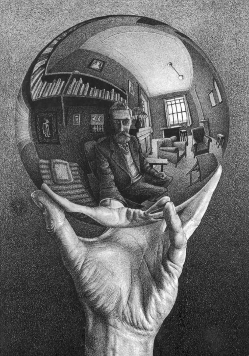 "M.C.埃舍尔的自画像 "带反射球体的手