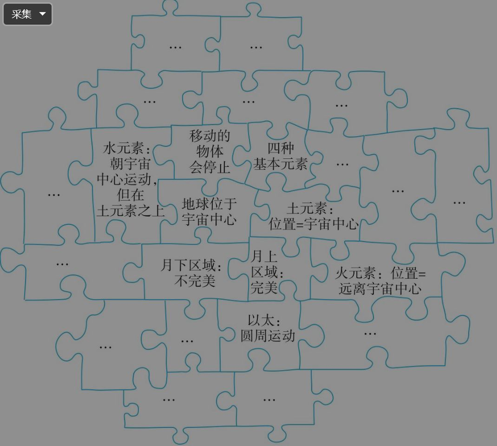 这就和我们平时玩的拼图一样,拼图与拼图是有内在联系的。和我们现代拼图不太一样的地方在于,我们买回来之后往往会有一个规则的框架往里面填充内容,世界观这块拼图更像是你拥有了一个核心观点,再从核心观点出发向四周扩散其他观点。
