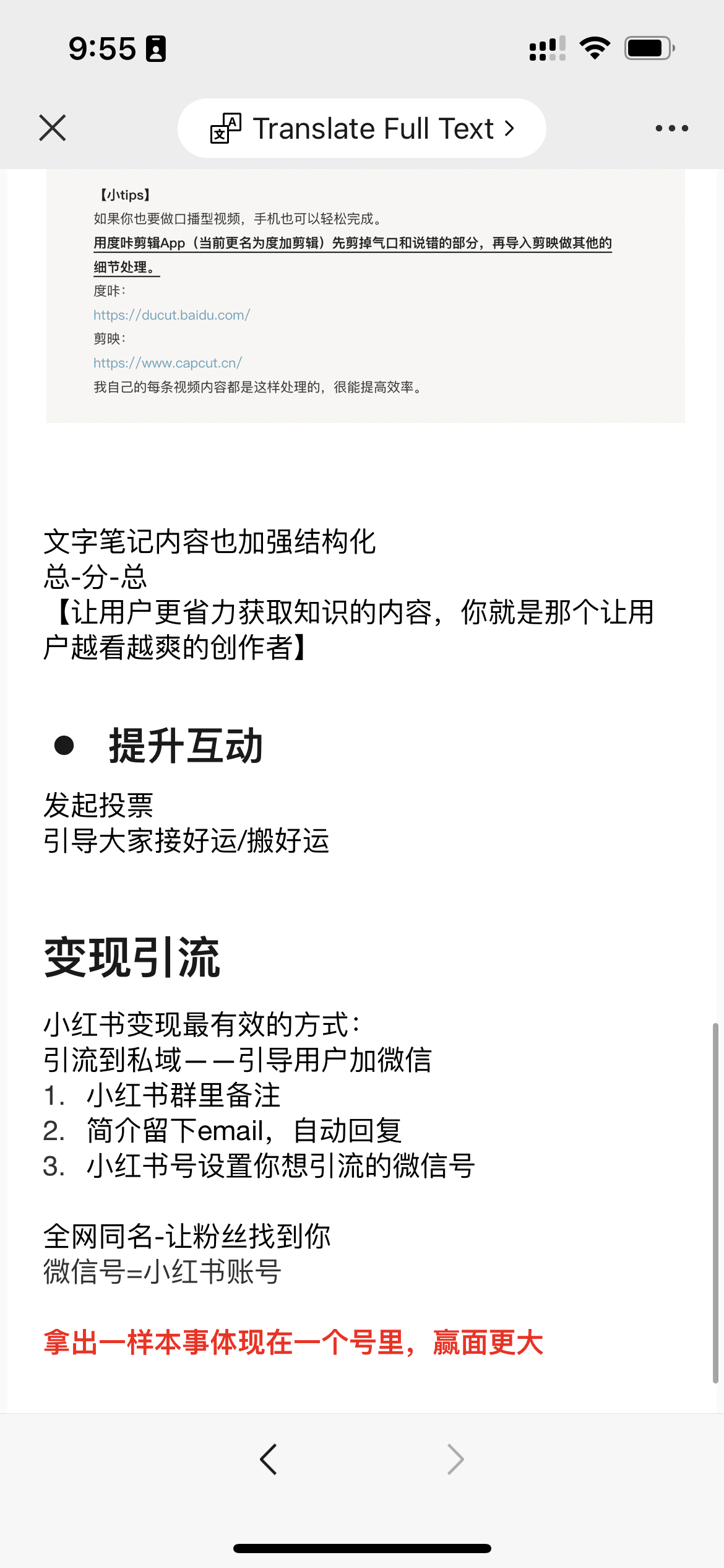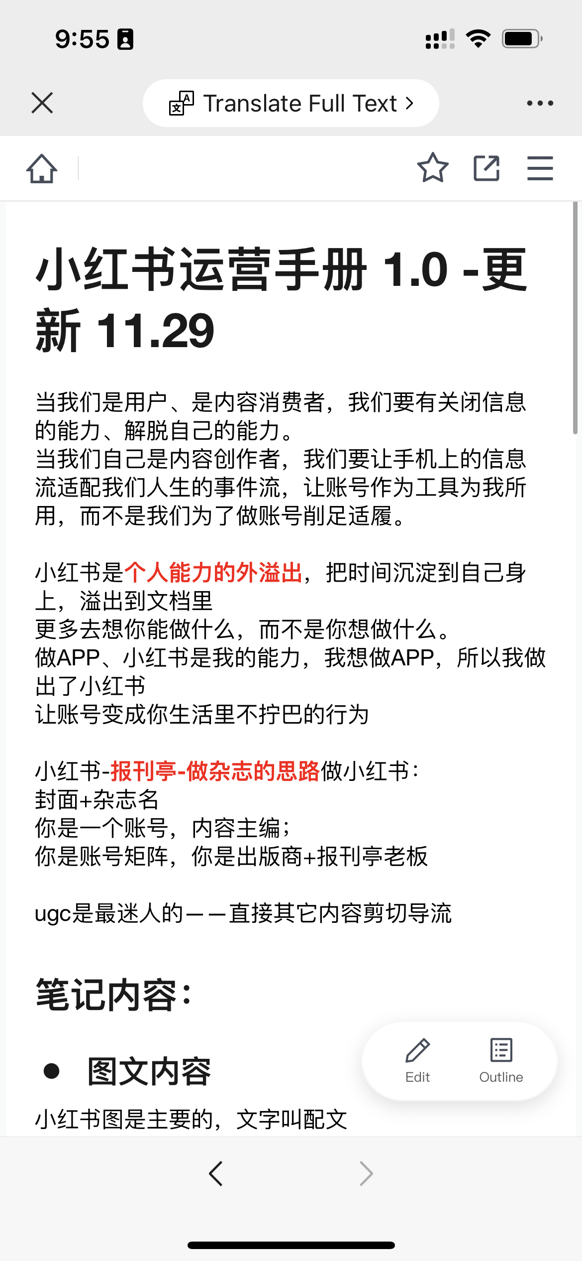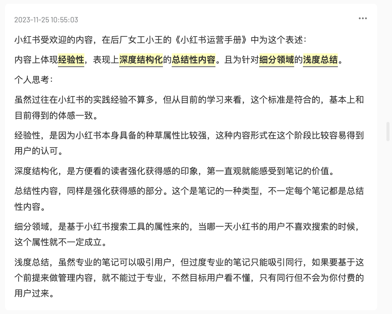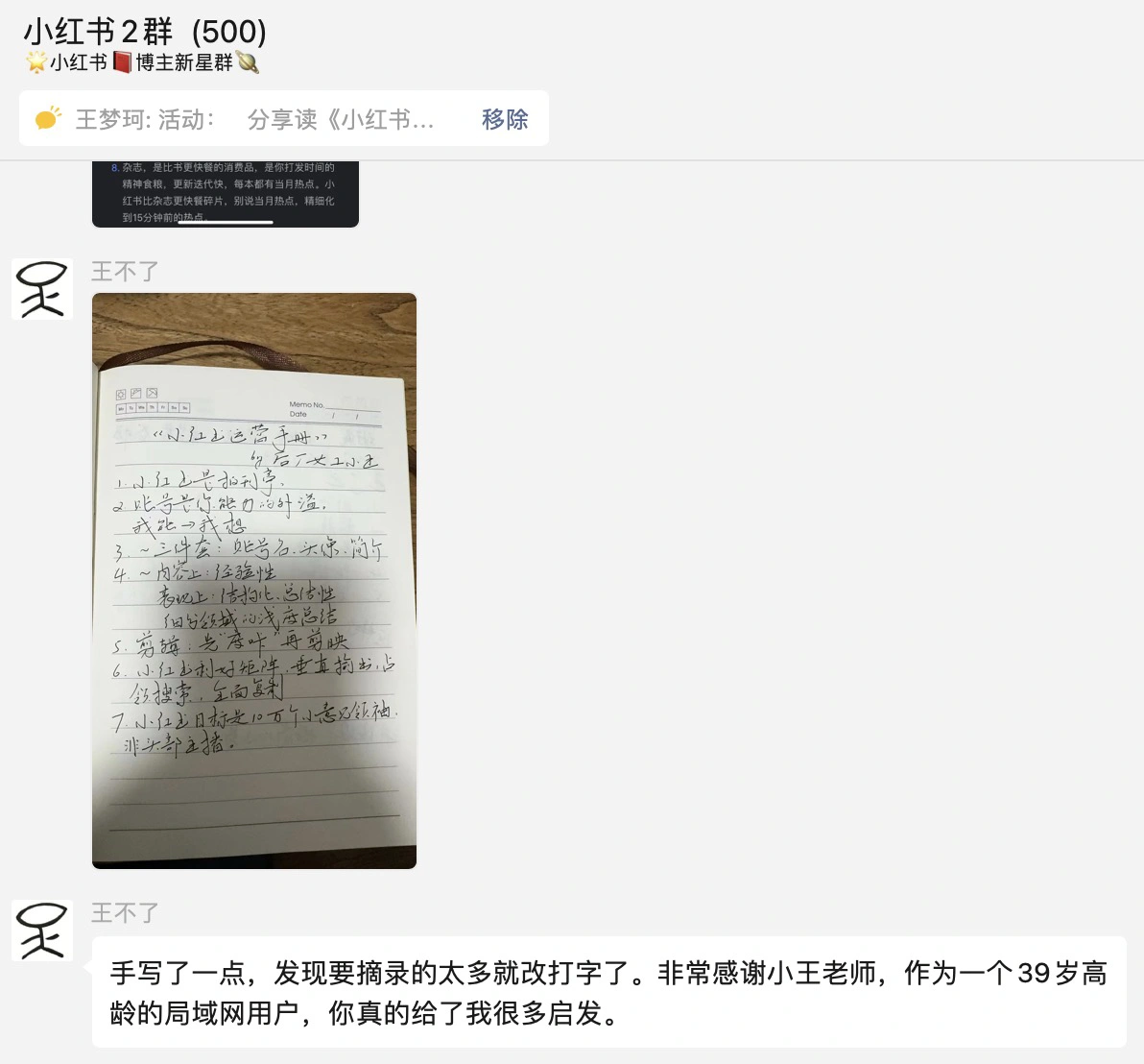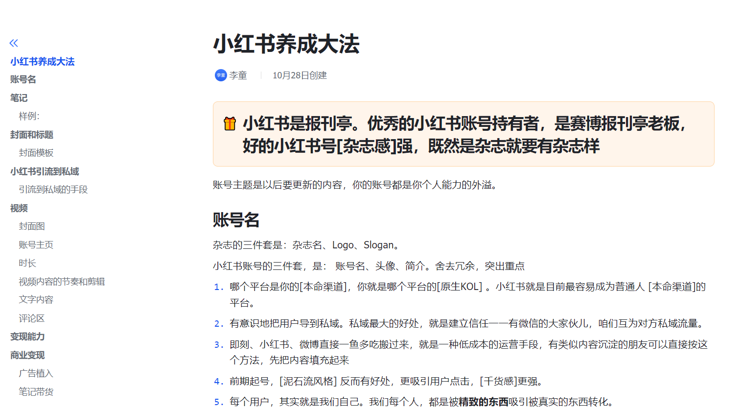 这篇内容分享部分读者做的笔记,对我都很有启发,希望对你也有启发。1、@王不了:2、@彭啊阳:3、@困困的芝士:4、@萝铃:5、@猴妹:7、@张沫:8、@昭宇:9、@Zoe:10、@没头脑小姐不高兴:11、@Yiran:12、@随便起个名字:13、@黄华-东方半野主理人:14、@fufü:15、@張文靖同學:如果你对《小红书运营手册》有特别的思考,也欢迎发进讨论群。群里不定期帮大家对接商务合作,如果有在运营的账号,欢迎填入下表:品牌合作-小红书博主新星群合作listhttps://kdocs.cn/l/cdQpIeRlGXtx今天再给大家推荐一些【免费】小红书的官方学习渠道:小红书网页版:https://www.xiaohongshu.com/一、小红书商家学习中心:https://school.xiaohongshu.com/newhome/?jumpFrom=wx二、小红书商业化学习中心:https://e.xiaohongshu.com/home三、小红书种草学:https://xue.xiaohongshu.com/2024小红书WILL商业大会直播:https://xue.xiaohongshu.com/detail/l_65770e15e4b023c0210ad7ef/4四、公众号:小红书商业动态包括小红书最新政策、功能、案例和直播课堂。五、公众号:小红书技术REDtech:小红书技术团队官方账号,分享小红书技术创新和问题解读,想了解小红书流量算法和分发的强烈推荐看看!六、18个分类84个官方薯账号这些内容都是最好的小红书网感样板,点击蓝色字可直接跳转。1、小红书内容创作和品牌商家类@小红书视频号@小红书成长助手@小红书创作学院@商家课堂薯@蒲公英小助手@薯条小助手@专业号助手@商家薯@新品薯@视频薯@直播薯@带货薯@测试薯@小红书体验站 (好物种草体验活动)@商业广告薯@商业产品情报官 (小红书营销工具实用指南)@惊喜盒子2、小红书政策类@薯管家@薯队长 (官方社区动态)@薯队长经纪人@招聘薯 (官方招聘)3、美妆类@美妆薯@美妆情报局4、时尚类@潮流薯@艺术薯@潮流情报官@小红叔 (男生穿搭)@时髦小姐姐@时尚薯5、美食类@吃不饱同学@吃货薯@零食情报官6、旅行探店类@城市情报官@走走薯7、摄影与设计类@摄影薯@RED Studio@小红书REDesign@小红书UED8、运动健身类@运动薯@蜜桃小姐姐@户外薯9、娱乐类@游戏薯@娱乐薯@音乐薯@巨星薯@电影薯10、生活类@生活薯@VLOG薯@日常薯@生活研究所@土拨薯@本地薯@好好玩情报局11、知识类@校园薯@知识薯12、母婴类@薯宝宝@辣妈成长日记13、宠物类@宠物薯@萌宠幼儿园14、人文绘画类@人文薯 (读书&戏剧&文化&影视)@玩家薯 (绘画&手工&文具&手帐)@心理薯15、汽车类@汽车薯16、家具建材类@家居薯17、数码3C类@数码薯@Geek小哥哥 (玩转科技数码生活)18、其他@我在小红书划重点 (G冲浪必备热点)@娱乐制造机 (小红书自制节目)@国货情报官 (国货品牌分享)@礼物情报官 (送礼指南)@公益薯 (正能量)@反诈薯@故事薯 (小红书用户正在发生的故事)@有一说一薯 (历史人文知识类内容问答)@WILL未来品牌@R-Space实验室 (小红书元宇宙)@薯小宝 (自称薯队长亲弟弟,分享小红书内部的一些日常活动)@红薯工作室 (小红书打工人日常)@ 小红书成长笔记@行政大当家 (小红书行政账号)@REDclub (