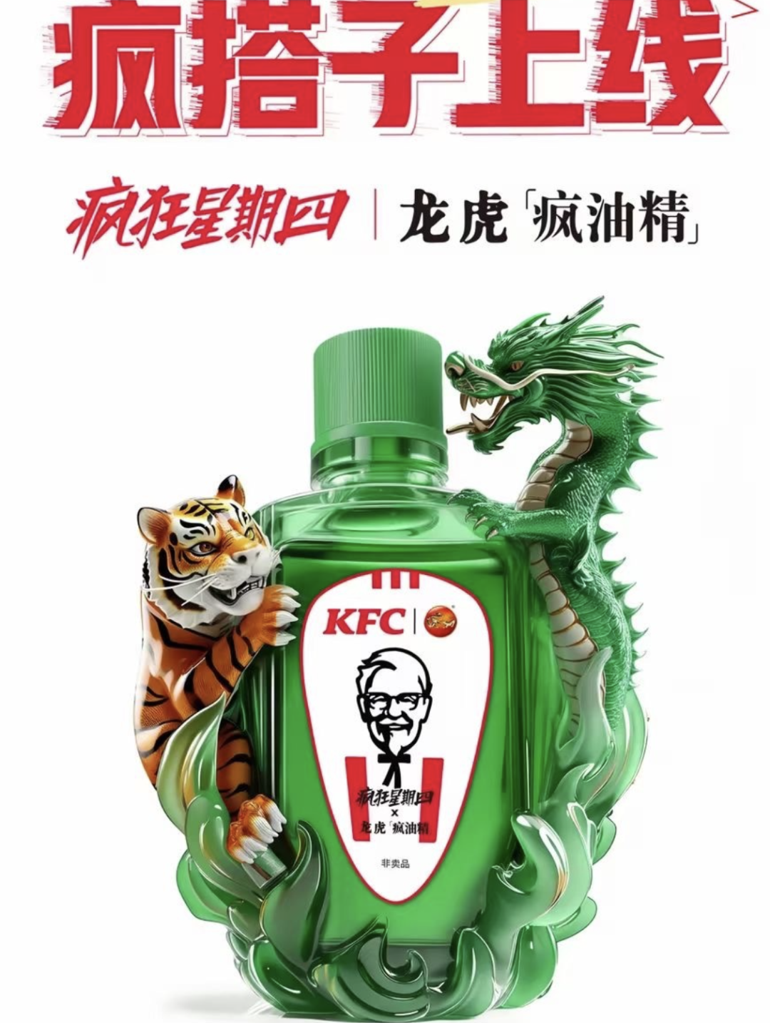 近日,肯德基与龙虎风油精开启联名,二者共同推出联名款「龙虎疯油精」、精油贴及包装袋,活动期间,消费者在指定门店任意消费,即可凭当日订单小票先到先得。与此同时,肯德基还在小红书APP发起话题互动,用户在活动评论区内创作50字左右的「疯段子」,即有机会获得肯德基礼品卡或联名发疯周边。(来源:FoodTalks)