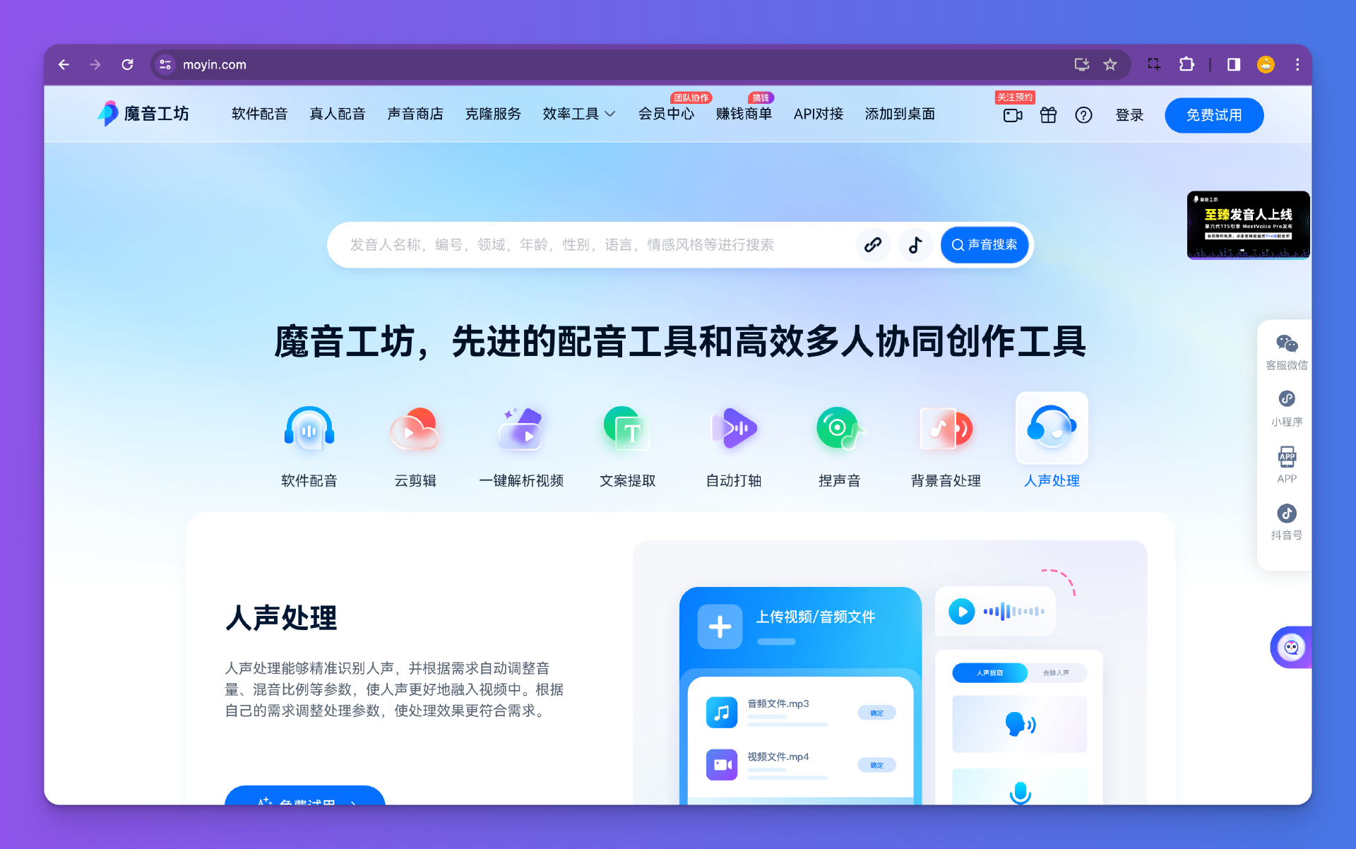 同时,它也提供真实感强的 AI 语音生成和声音克隆功能,适合制作虚拟旁白和改善音质。免费用户也可以体验。