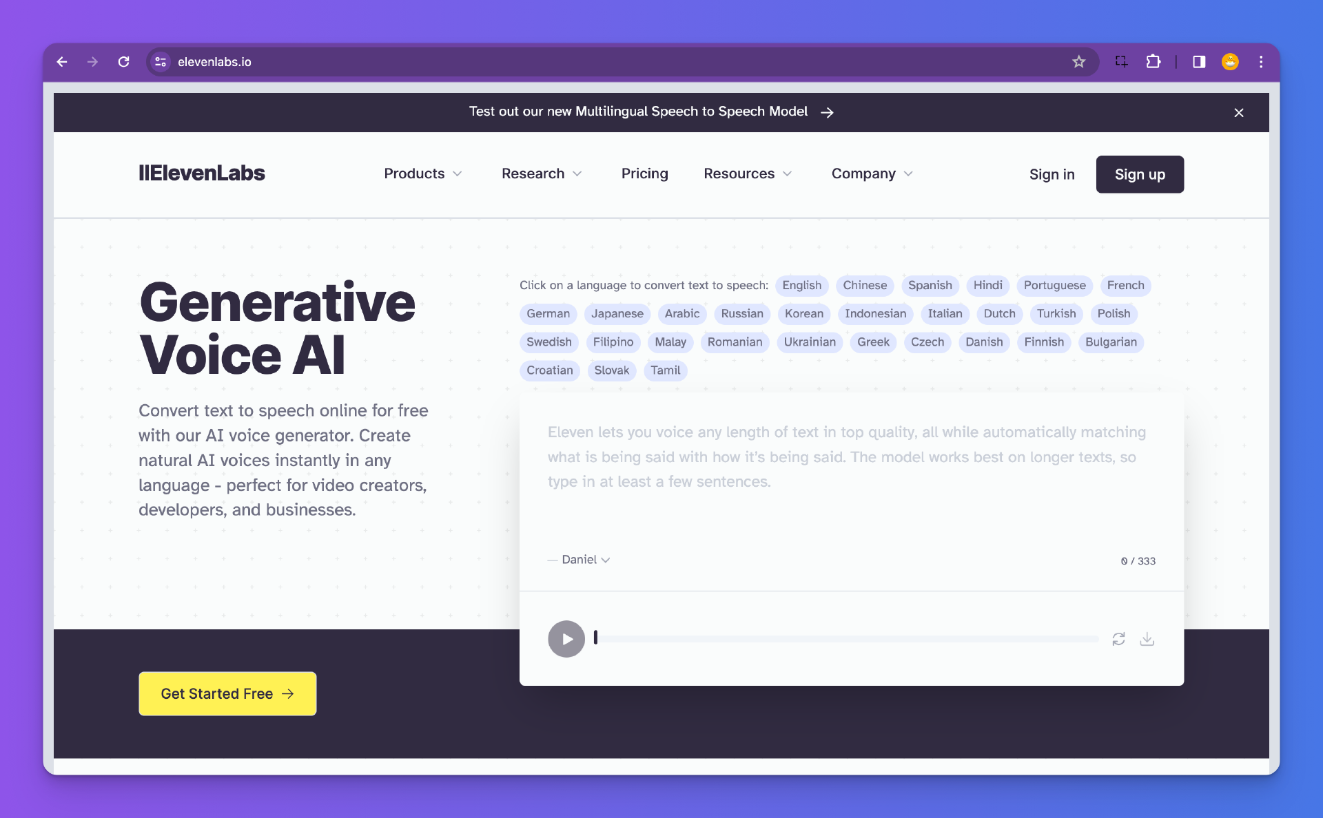 ElevenLabs 是语音合成届的领军人物,一直以自然、流畅的 AI 音色而闻名,它的音色克隆,可以完美还原人声的口音和韵律,同时还能保证高品质的音效。但可惜,现在需要付费才能使用其音色克隆功能。