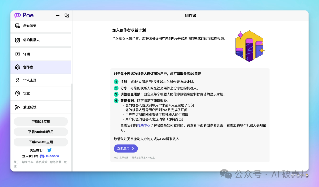 Poe 官方的创作者分润计划为机器人开发者提供了一个收益的机会。