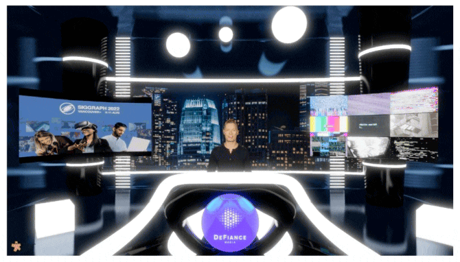 1. 3D 虚拟演播室的创建:他们根据 DeFiance 的品牌形象,在 Hour One 上创建了自己的 3D 虚拟演播室。