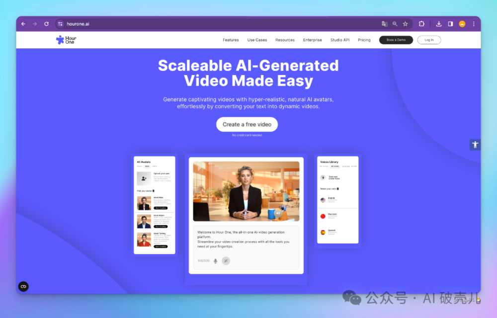 Hour One 是 AI 视频应用中的佼佼者,专门用于创建逼真的 AI 视频虚拟主播,并自动化完成视频制作流程。它支持多语言和多方言,有效扩大了内容的多样性和覆盖范围。