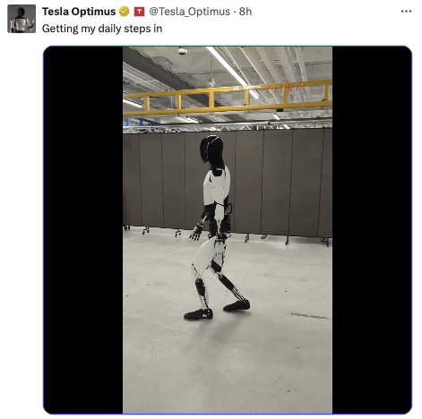 据界面新闻,当地时间2月24日,特斯拉公司在社交平台X分享了一段长达1分18秒的视频,展示其正在研发的Optimus人形机器人的流畅步行能力。视频展示了该机器人在测试场地内行走,并配文:“正在完成每日步数目标”。