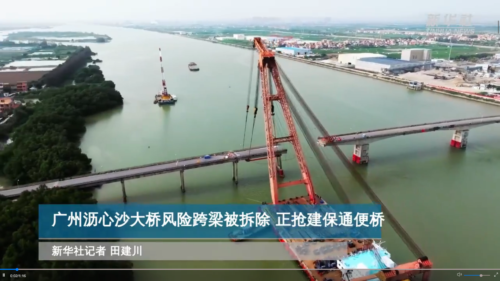 据新华网,27日,广州南沙区沥心沙大桥被撞后存在安全隐患的跨梁被拆除。施工单位中铁广州工程局介绍,拆除作业历时1个多小时。后续,广州市南沙区将综合桥体监测情况及专家论证意见,加快推进桥梁修复工作。此外,一条连通广州南沙区三民岛与中山市沙仔村的保通便桥正在抢建中。