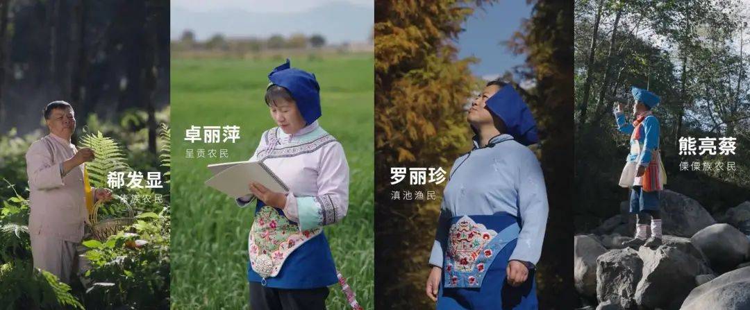 这四款色彩明亮、充满活力的插画图案,其实是来自四位云南的农民画家: