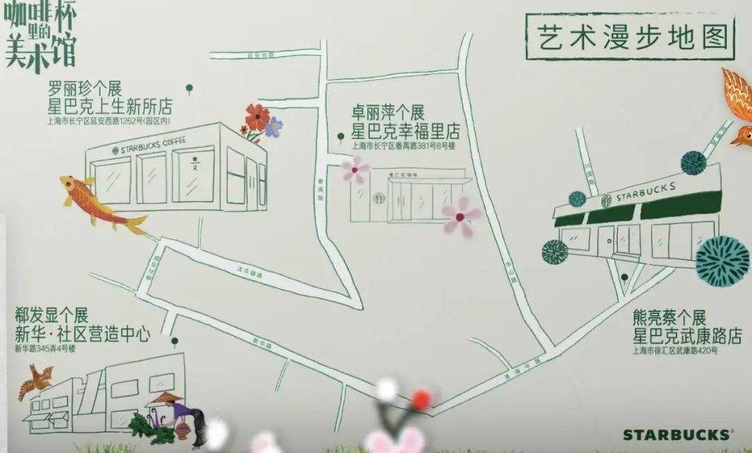 如果还想看更多,上海的用户还能到四家星巴克门店观看这几位画家的个展
