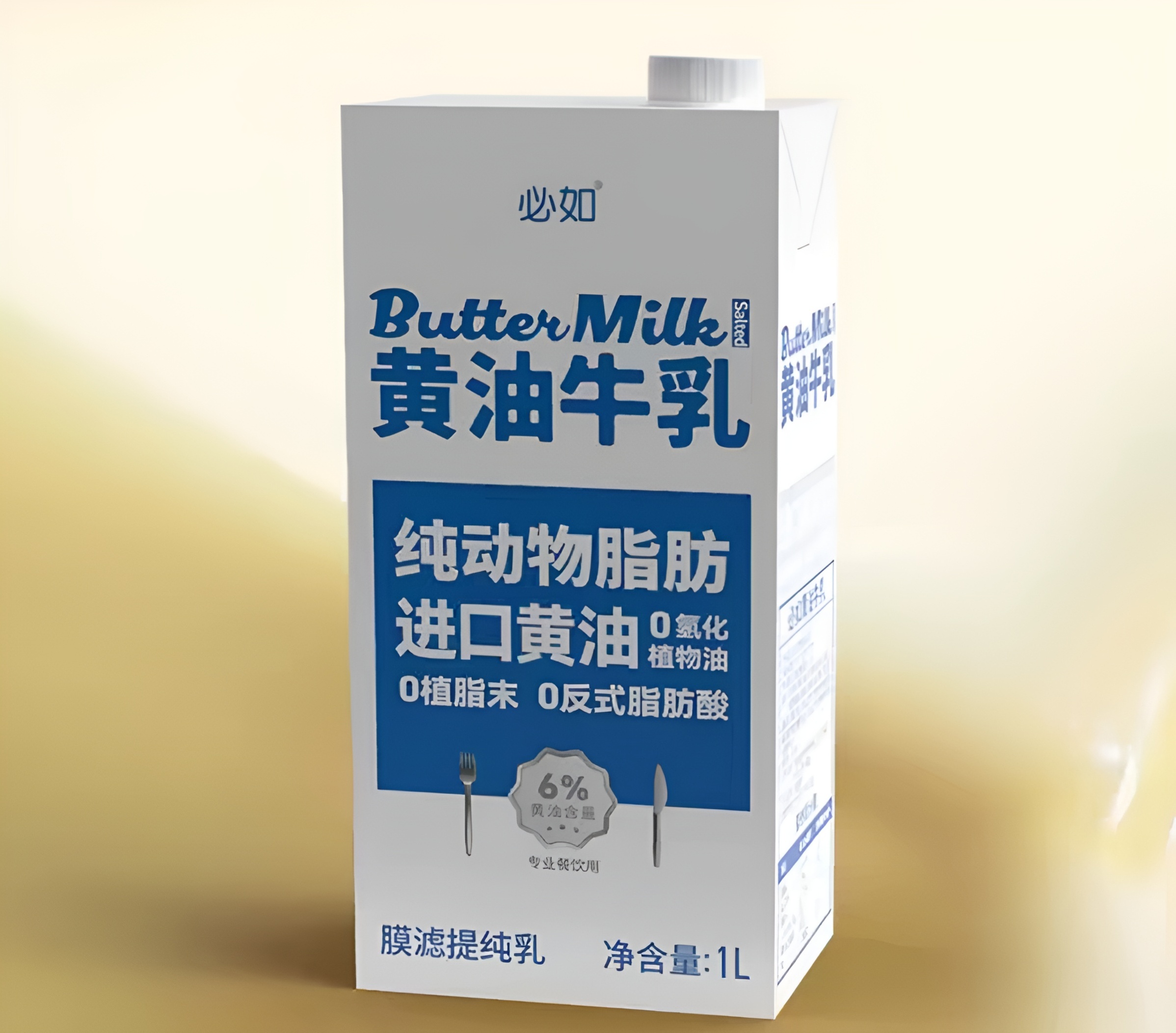 这一产品采用纯动物脂肪和进口黄油,0氢化植物油、0植脂末、0反式脂肪酸。为了确保产品状态稳定,口感均匀,该产品采用同源乳脂交换技术对蛋白和融化的固体油脂进行融合均质。