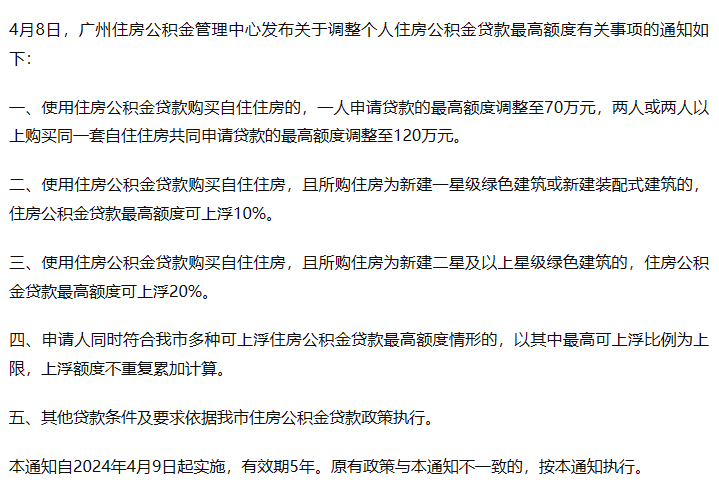 据界面新闻,4月8日,广州住房公积金管理中心发布关于调整个人住房公积金贷款最高额度有关事项的通知如下: