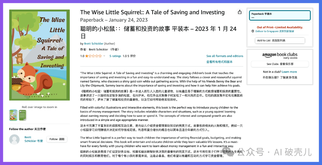 本文来自微信公众号:AI 破壳儿(ID:ai_shell_breaker),原文标题:《有人用 AI 写小说和绘本卖钱,在亚马逊变身「跨界作家」》