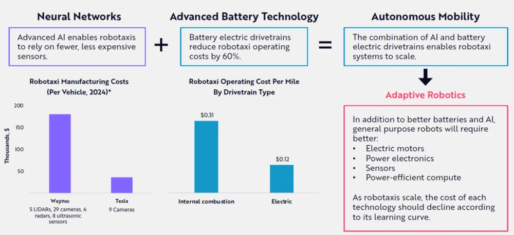 在汽车动力方面,电动的价格也远低于传统内燃气的价格。神经网络 + 电池技术的进步融合,让自动驾驶迅速进步。