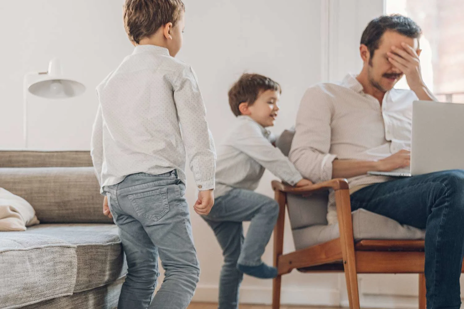 在这一天的末尾,丈夫拖着疲惫的身体去参加最后一场视频会议,他的两个好大儿给他来了一场“核爆”,跑到摄像头前跟同事们大喊大叫。