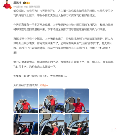 5月7日,周鸿祎微博发文回应直播发飙:上半场聊太嗨了,导致没注意到飞行表演正在进行,还以为没给粉丝展示表演。有网友说我生气了,还有网友说我生气也是“剧本安排”,都无伤大雅。