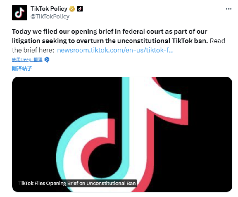 TikTok和字节跳动在周四请求法院废除这项法律,他们辩称,这项法律彻底背离了美国支持开放互联网的传统,开创了一个危险的先例,允许政治分支机构打击一个不受其欢迎的言论平台,迫使其出售或关闭。TikTok还在周四公布了与美国联邦高级官员进行多次机密会议的细节,这些会面旨在消除美国对TikTok所有权的担忧。TikTok在一份法庭文件中表示,这些互动的细节表明,美国联邦政府在2022年9月就该公司的努力“停止了实质性接触”。