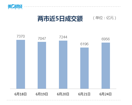 据第一财经,6月24日,A股三大指数低开低走,个股呈普跌态势。截至收盘,沪指跌1.17%,深证成指跌1.55%,创业板指跌1.39%。全市场近5000只个股下跌。