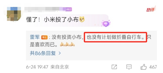 据21财经,7月5日,“小米公路车”冲上微博热搜,引发网友热议。有消息称,小米即将推出公路车产品,售价1999元,且为全碳破风车架。记者联系小米客服,询问是否计划推出上述产品,相关人员表示,关于小米公路车,目前暂时未收到相关通知,线上也暂时没有该产品。