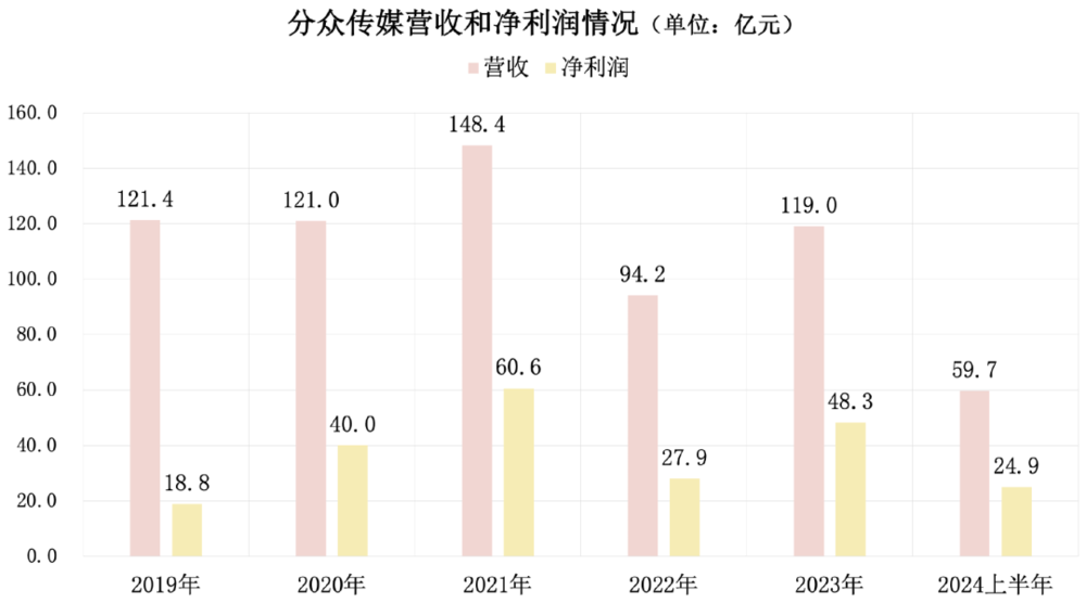 上半年,分众传媒营收59.7亿元,同比增长8.2%;净利润24.9亿元,同比增长11.7%。