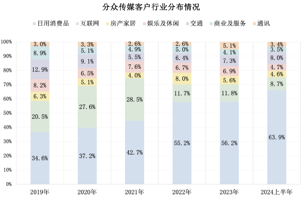 分众传媒客户行业分布情况(2019年-2024年上半年)