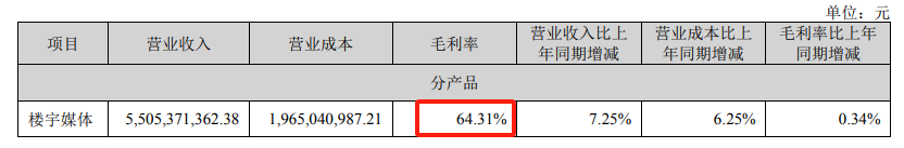 毛利率高,今年上半年,分众电梯广告的毛利率高达64.31%。