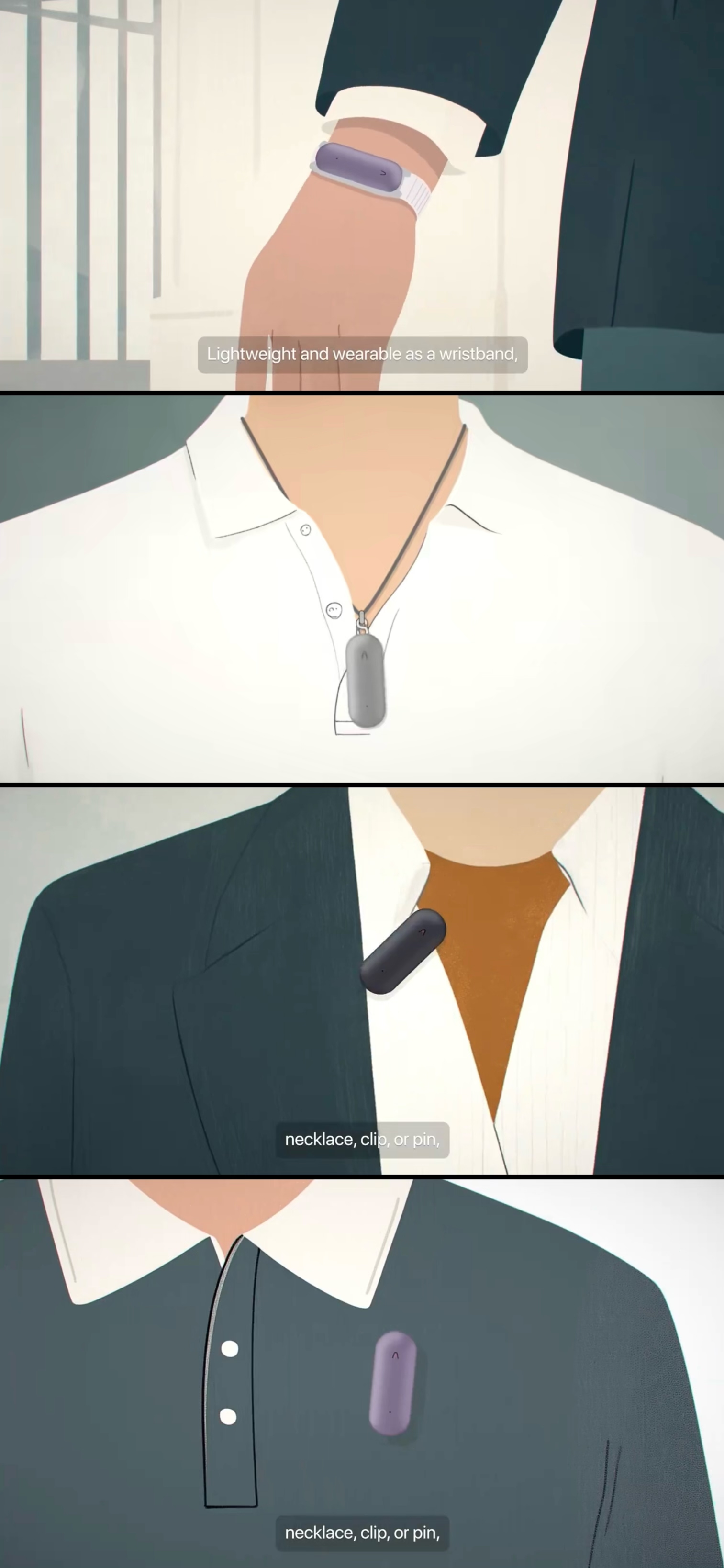 2. 灵活性设计:该设备支持多种佩戴方式,可作为吊坠、别针、手环使用,或夹在其他位置,充分适应不同场景需求。