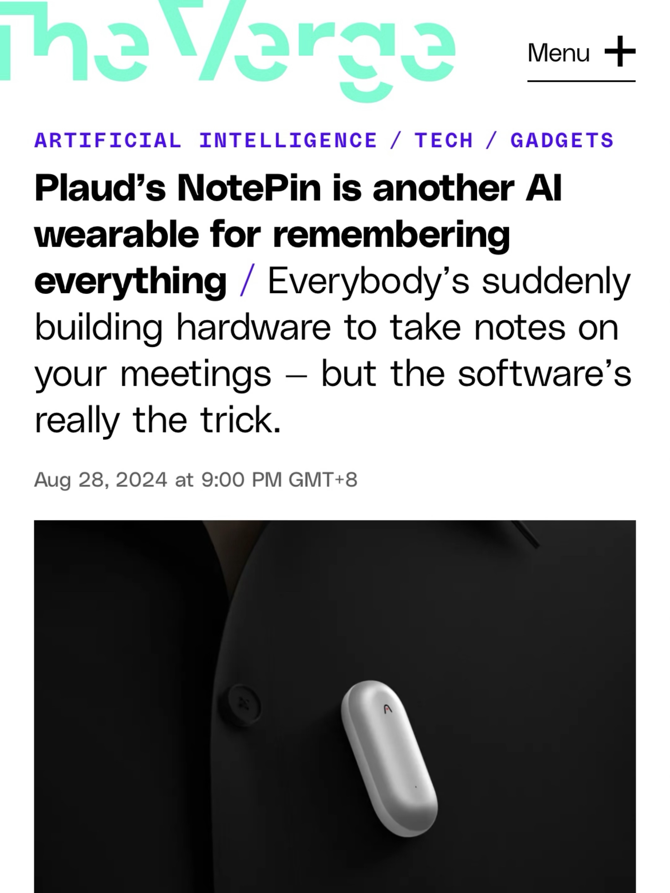就在昨天,AI 硬件公司Plaud AI继爆款产品Plaud Note之后继续推出新品NotePin👉