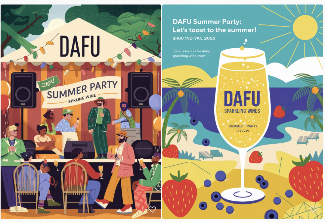 The A vibrant event poster for DAFU sparkling wine's Summer Party